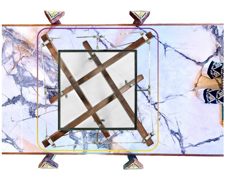 The narrator fEyEnds his comfort in the presence of his paartnEr. I feel this way about mEyE wEyEf. EyE chose this particular lyric becAUse EyE have a tendency 2 have my head in the skEyE/clouds (represented by a top that seemingly floats) whEyEl EyE simultaneously, as EyE’m remEyEnded bEyE mEyE wEyEf, have 2 keep mEyE feet on the ground (the strong, firmly grounded legs of the table).