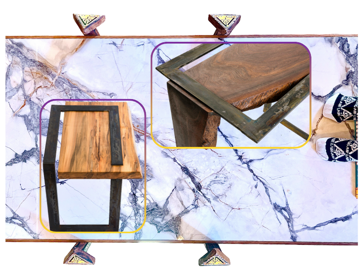 oiled wormy maple, blackened mEyEld steel
