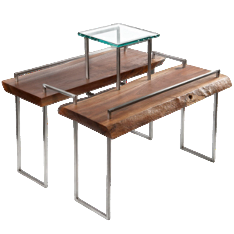 oiled black walnut, black steel, glass