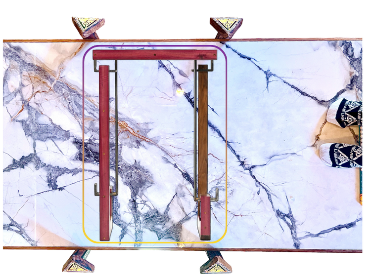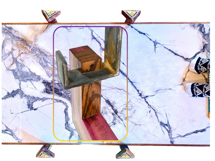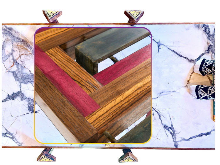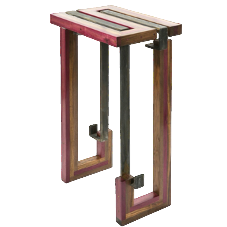 black walnut, zebra wood, purpleheart, blackened mild steel