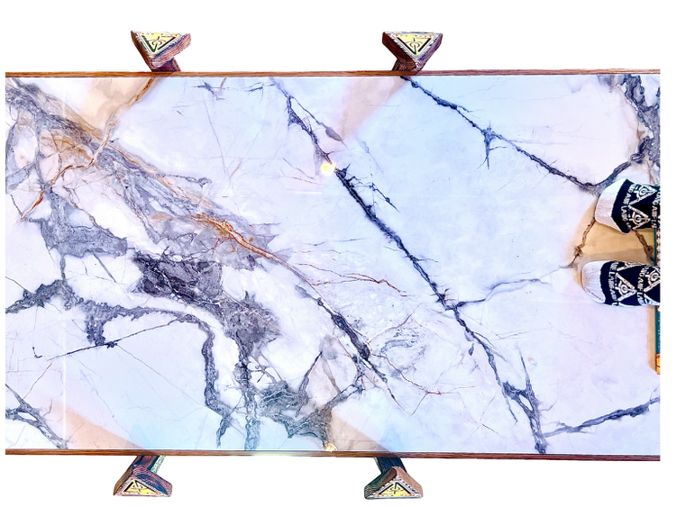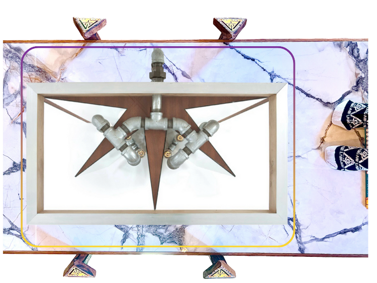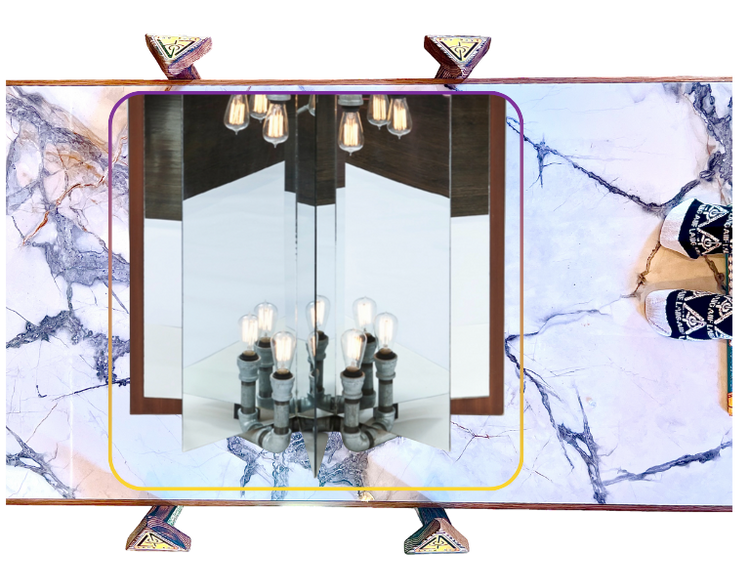 vanity is symbolEyEzed, in the western world, bEyE the peacock. The shape of the mahogany + the mirrors that attach to it represent the bird’s tail.