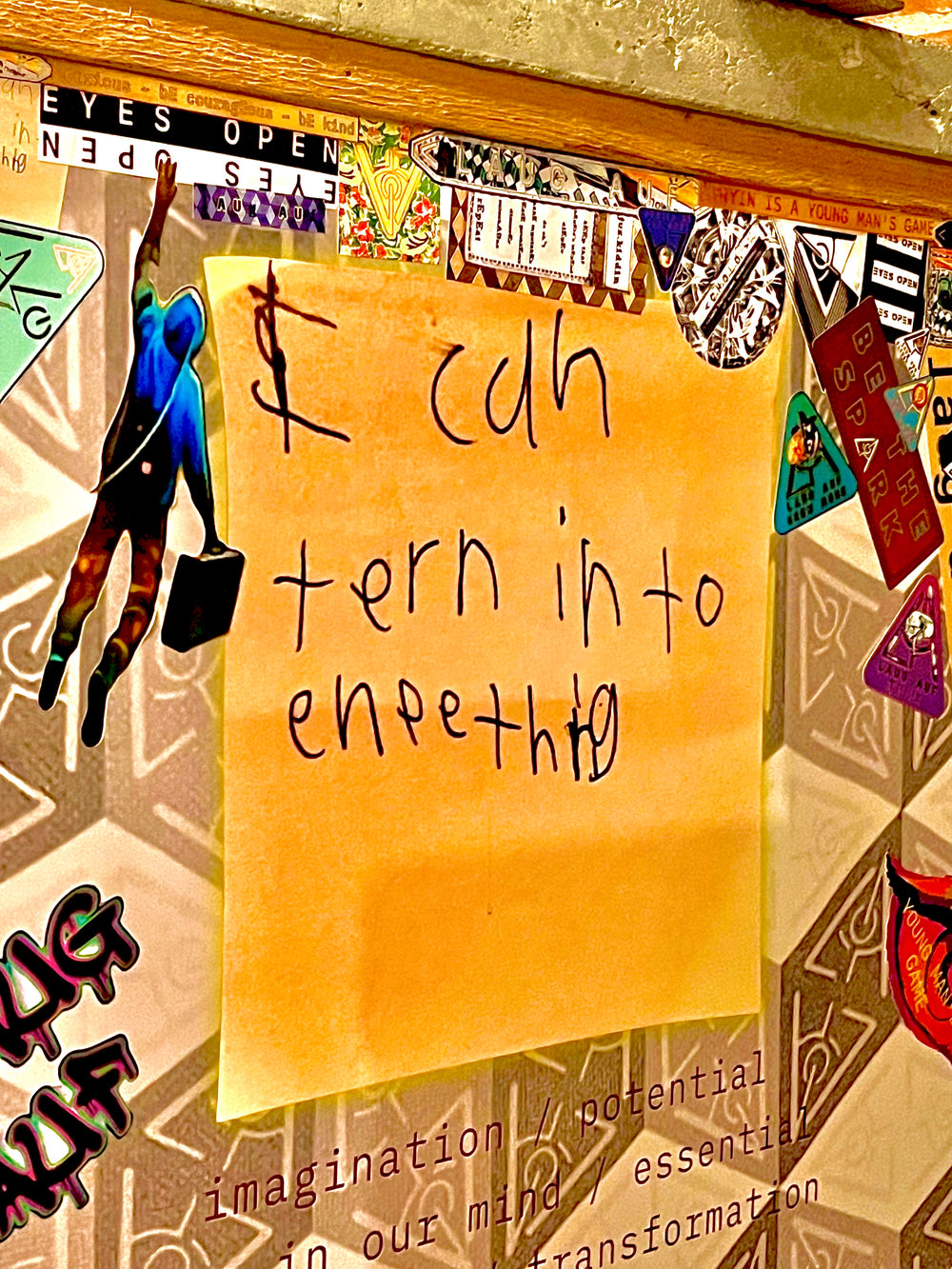 a child’s truth: “I can turn into anything.” Imperfectly spelled, vulnerably expressed, yet containing limitless possibility. It remEyEnds us that imaginashAUn + potenshAUl are inseparable; only what we dare 2 picture is what we're able 2 become.