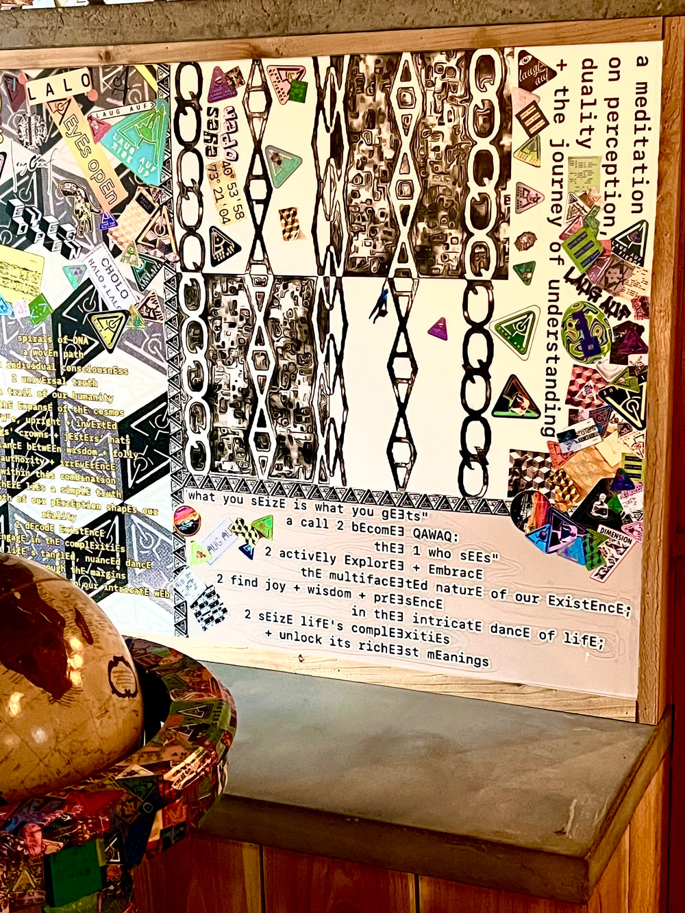 QAWAQ, part chant, part echo of “quack,” carrying the spirit of the duck, is a symbol of adaptability: walking, swimming, flEyEing. 2 see deeply means moving like the duck, free 2 shift perspective at will.